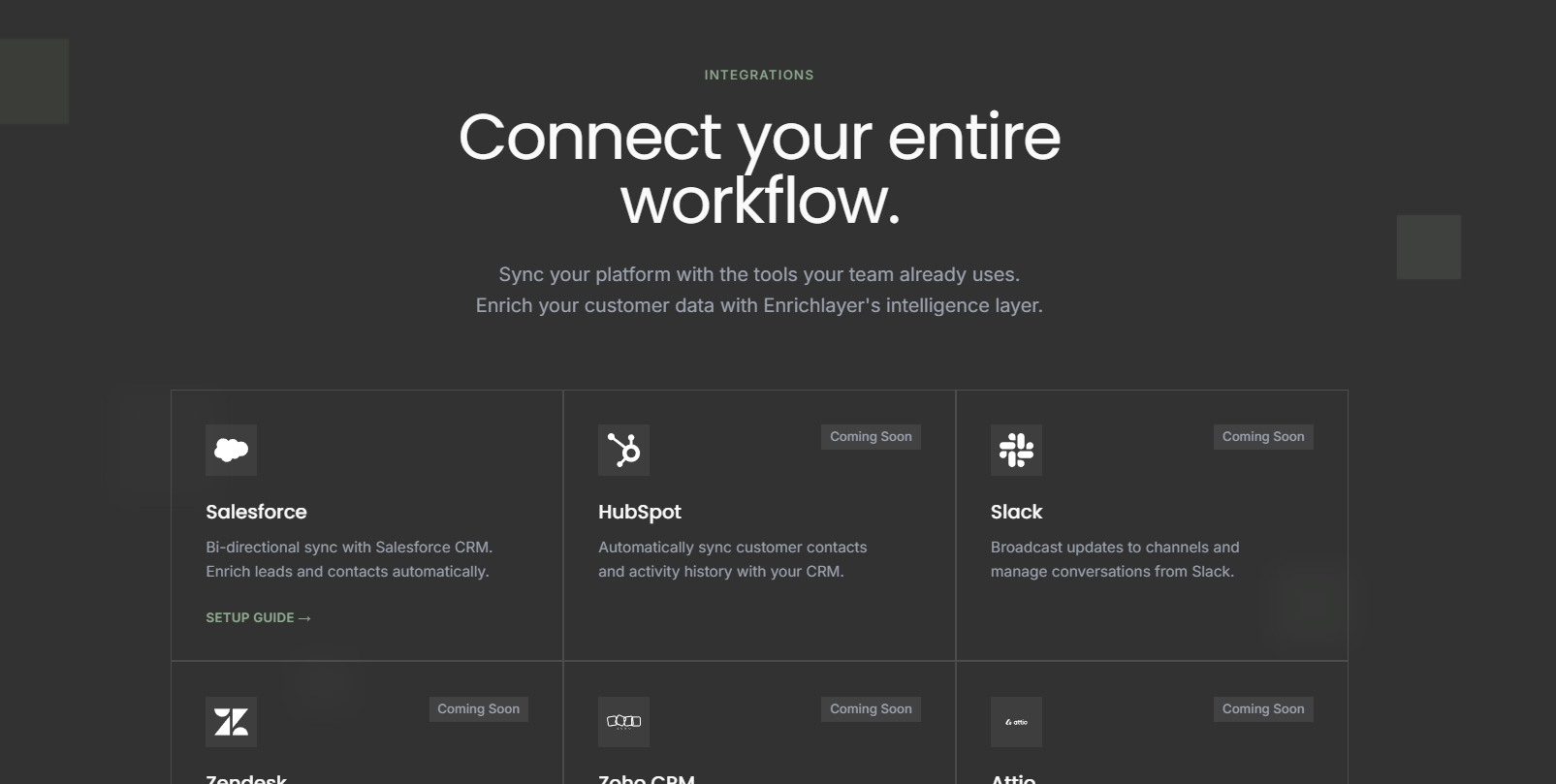 Native Salesforce and CRM integrations for LinkedIn data enrichment, enabling seamless lead intelligence workflows.