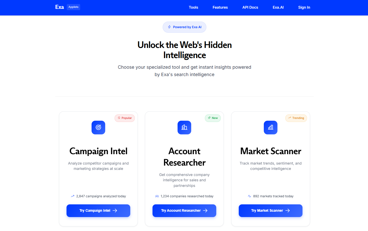 Interactive demonstration platform showcasing AI-powered intelligence tools for enterprise sales and research workflows.