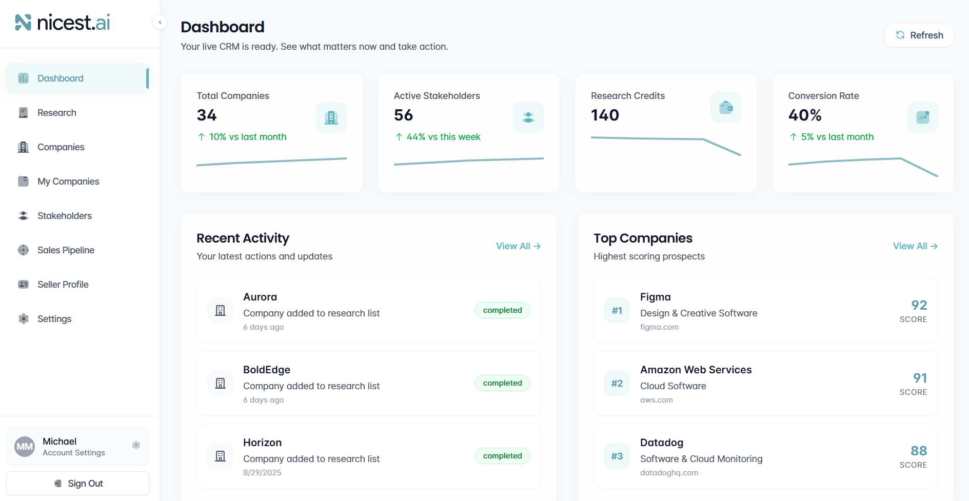 AI-powered sales intelligence platform for enterprise with real-time lead scoring, automated outreach, and CRM integration.