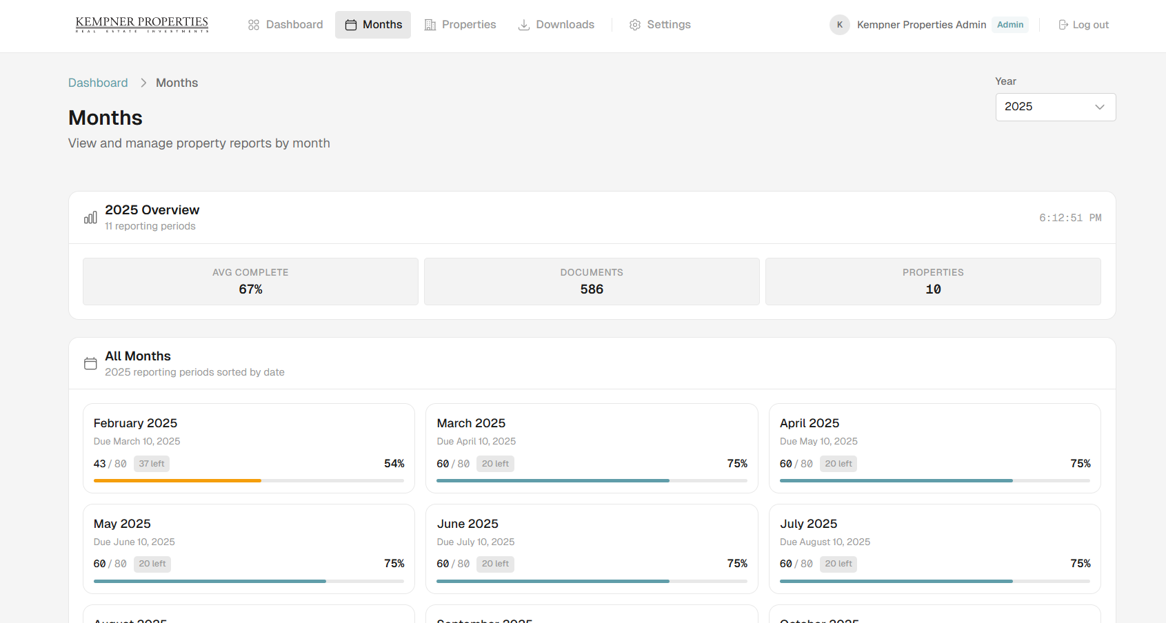 Enterprise property management portal for PE firms with fiscal reporting, portfolio analytics, and investor dashboards.