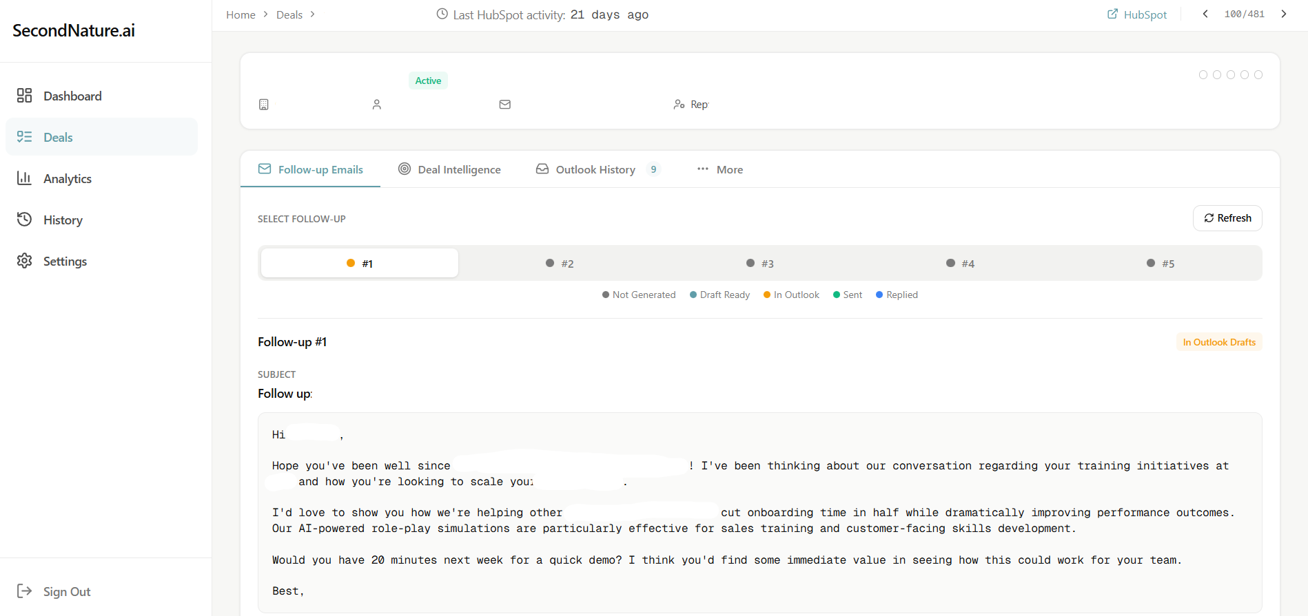 HubSpot pipeline management software automating follow-up emails with AI-powered personalization and timing optimization.